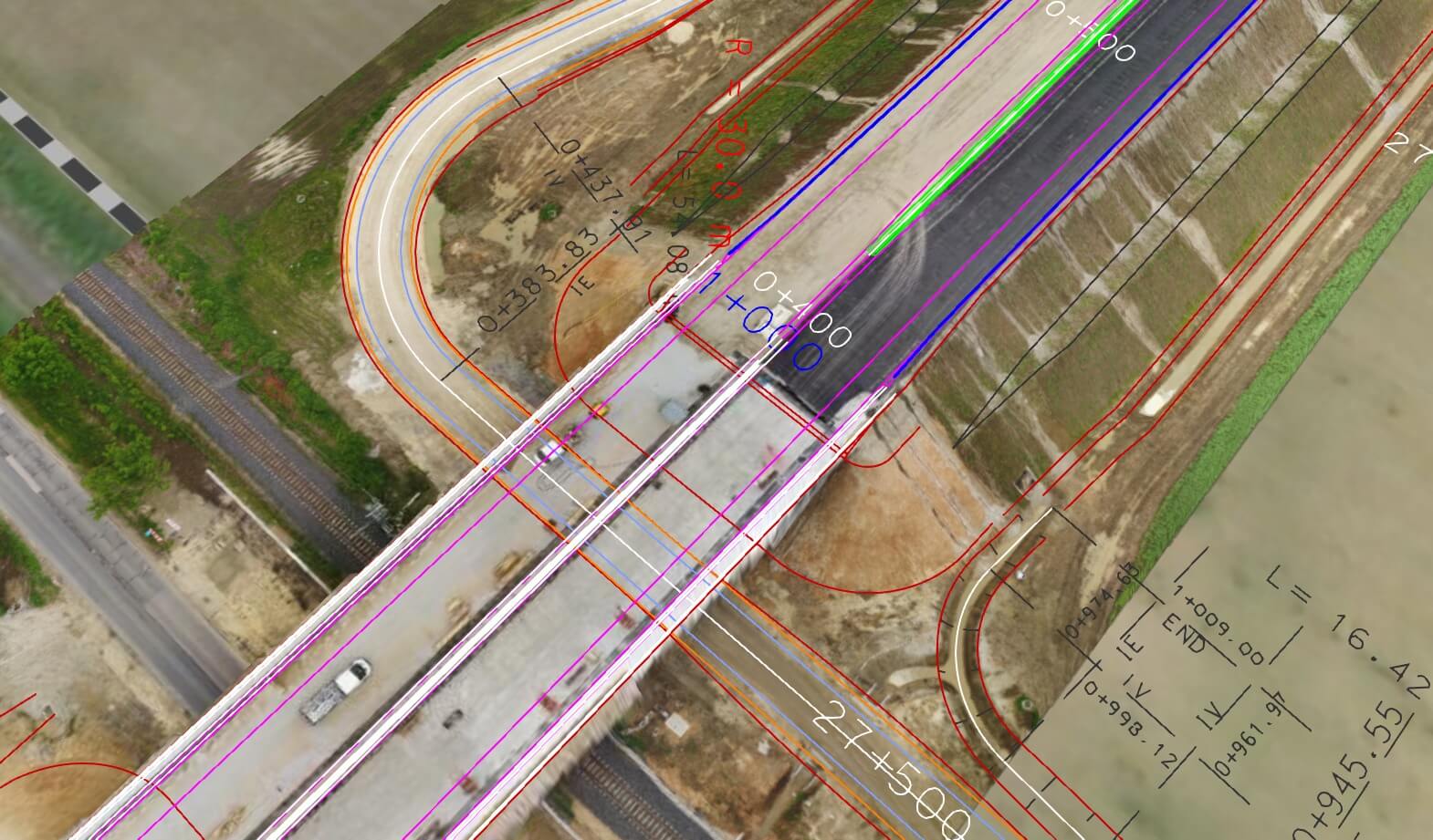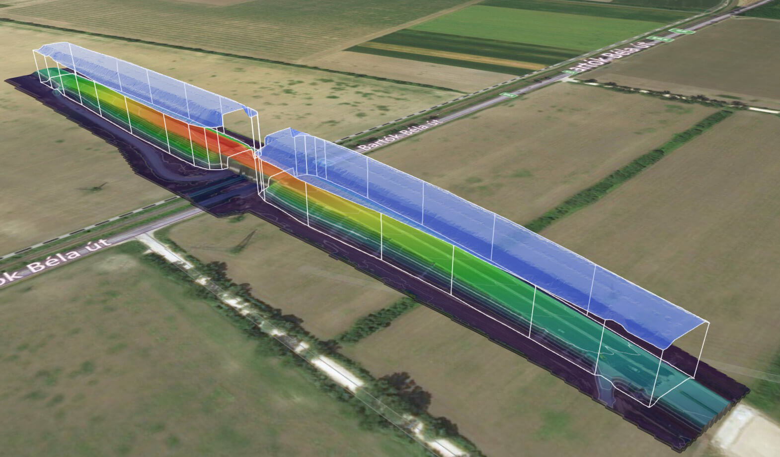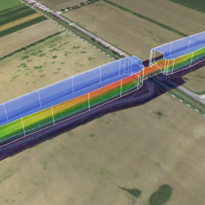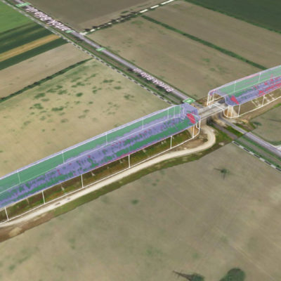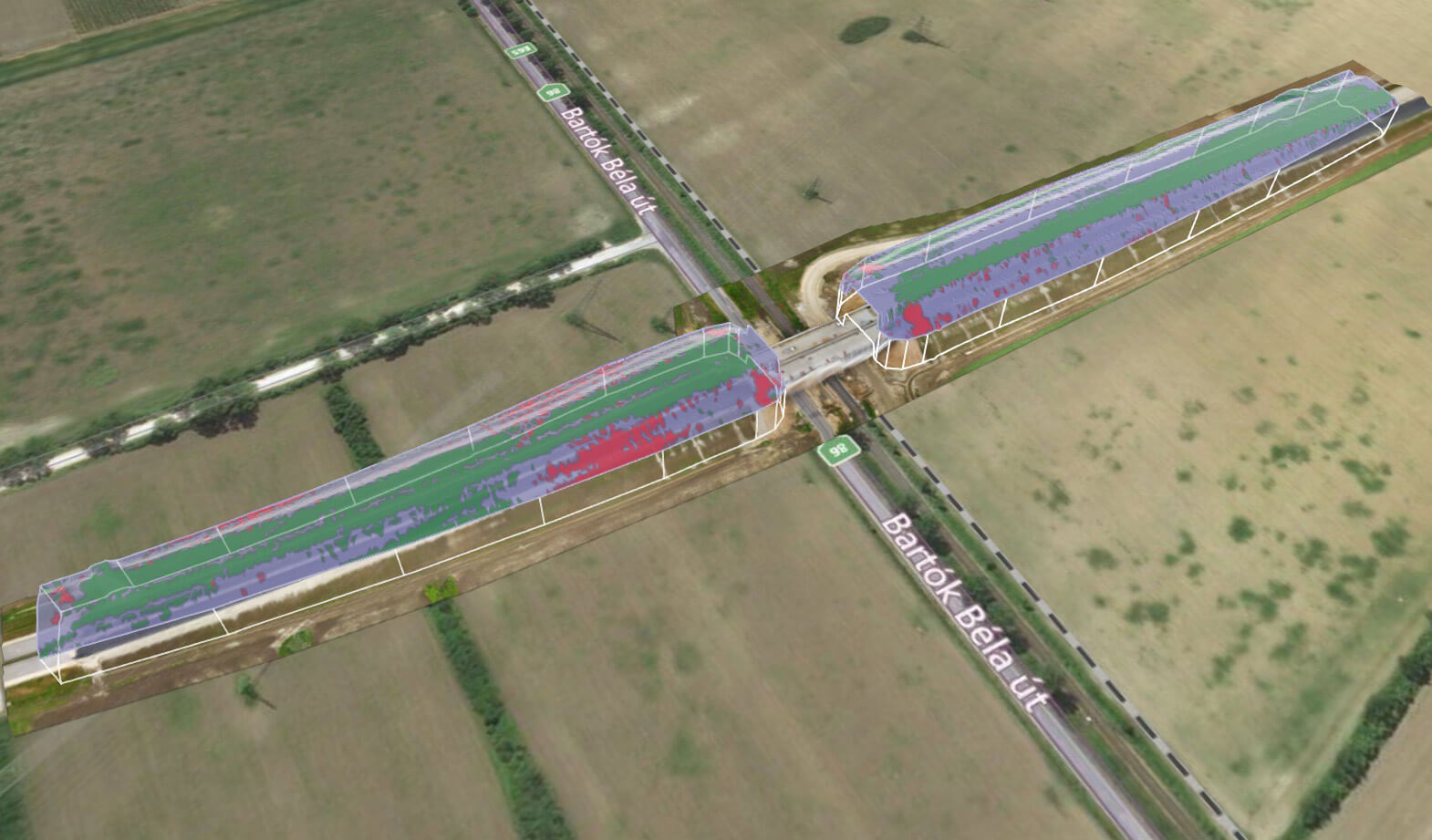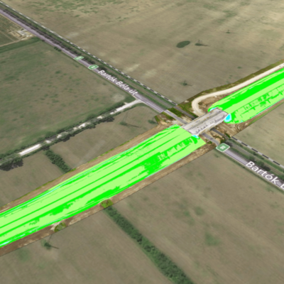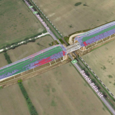 Kihívás: Egy 800m-es útszakasz bemérése drón technológiával vagy laser scannerrel külön tervezést igényel. A 3D megjelenítése egy ilyen méretű objektumnak.