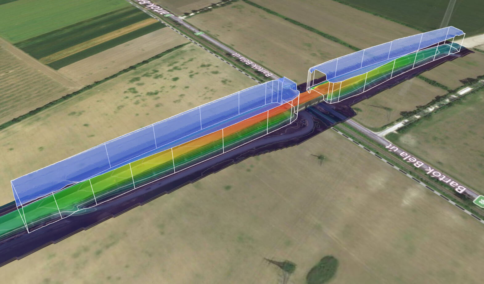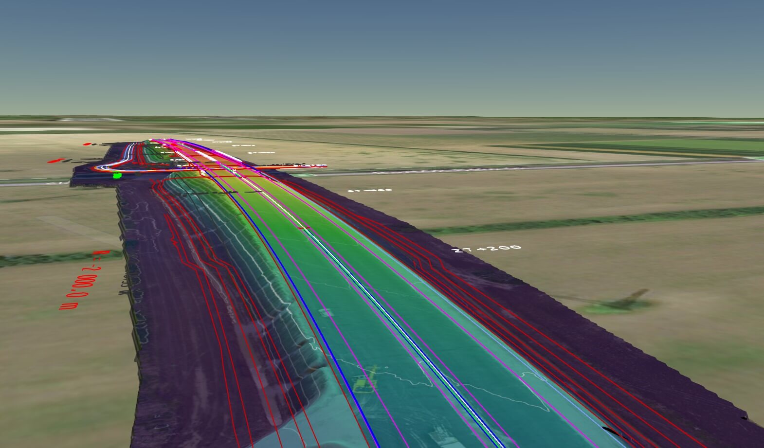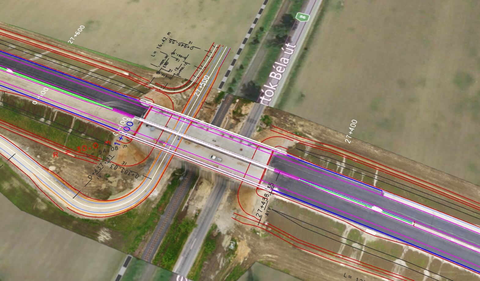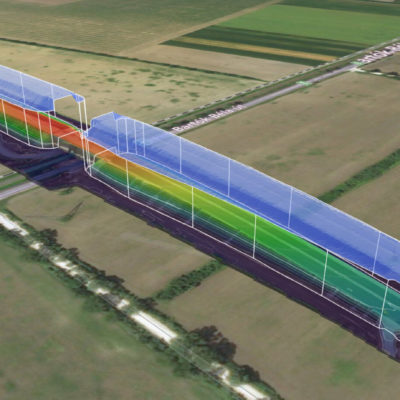 Kihívás: Egy 800m-es útszakasz bemérése drón technológiával vagy laser scannerrel külön tervezést igényel. A 3D megjelenítése egy ilyen méretű objektumnak.
