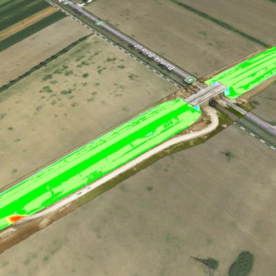 Feladat: Laser scan mérési technológia beépítése az útépítési alapozási munkafolyamatokba, hogy az eddig nehezen kalkulálható és ellenőrizhető útalap feltöltési munkafolyamatokat szabályozni tudjuk és ez transzparenciát biztosítson, amivel pozitív irányba javíthassa a projekt eredményességét.