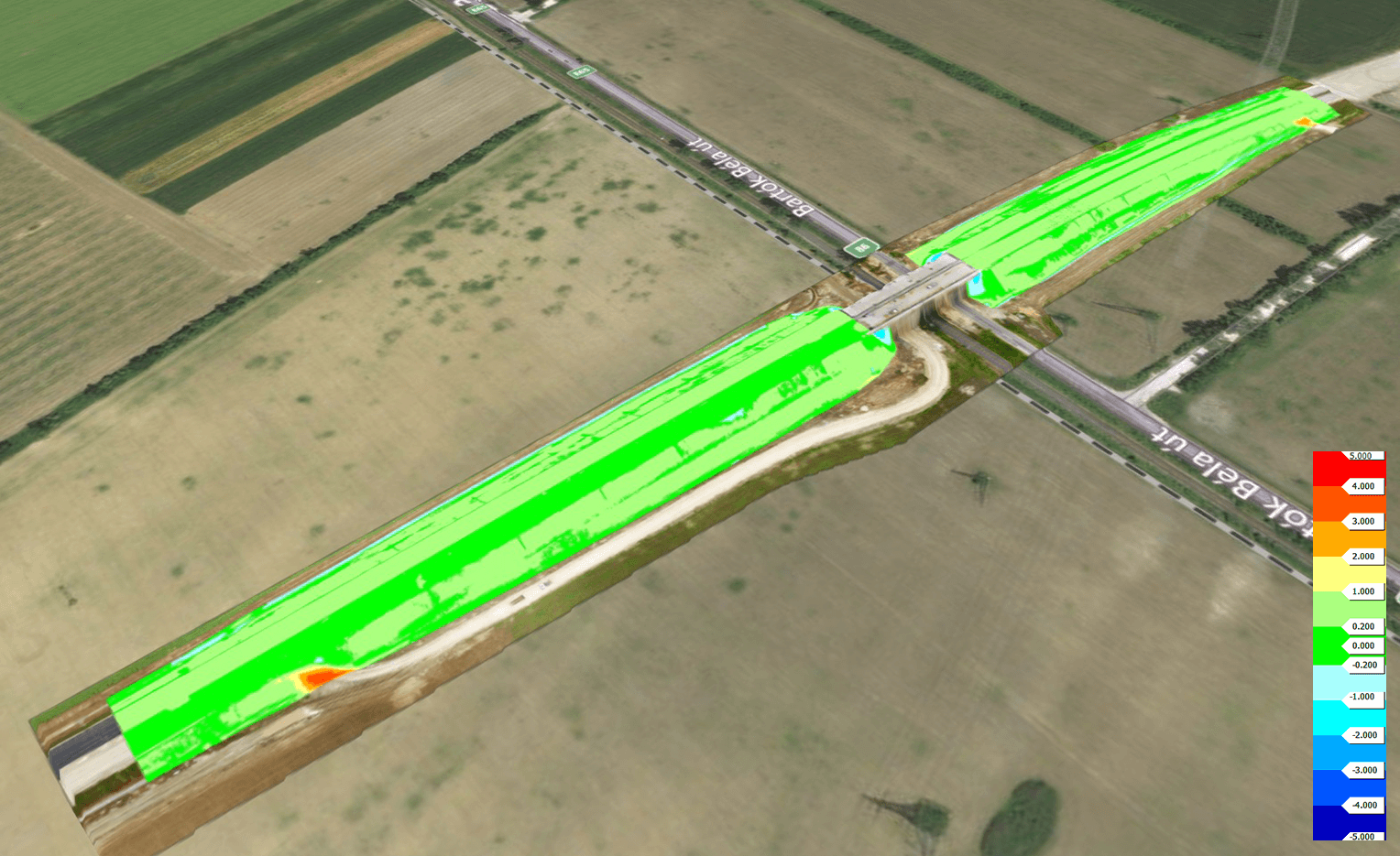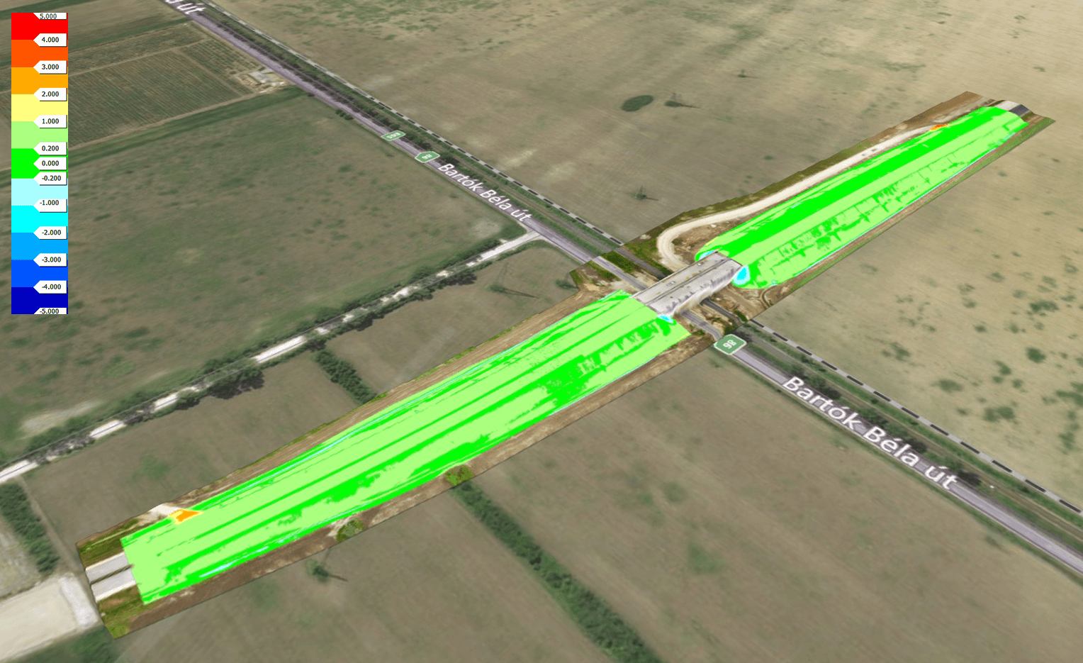 Laser scan mérési technológia beépítése az útépítési alapozási munkafolyamatokba, hogy az eddig nehezen kalkulálható és ellenőrizhető útalap feltöltési munkafolyamatokat szabályozni tudjuk és ez transzparenciát biztosítson, amivel pozitív irányba javíthassa a projekt eredményességét.